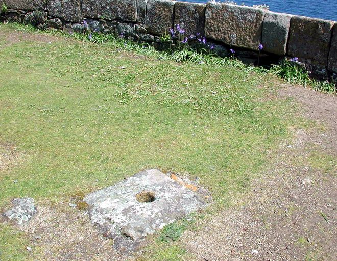 Vue de la plate-forme de la batterie : emplanture du mât de pavillon (état en 2002)Immatriculation