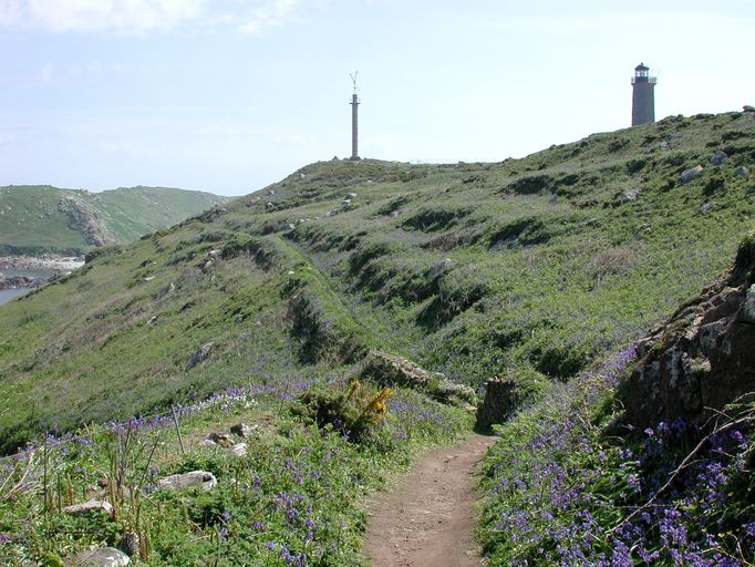 Perros-Guirec, fort de l'île aux Moines : vue générale du chemin de ronde central défilé par un parapet. En arrière plan : nous pouvons apercevoir la batterie Nord-estImmatriculation