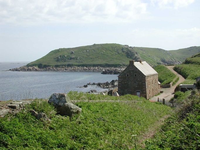 Vue du chemin à l'extrémité ouest (état en 2002). Il dessert la caserne. En arrière-plan, l'Île BonoImmatriculation