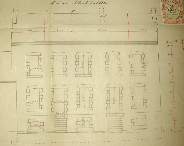 Privés des institutrices. Plan de l'élévation postérieure (AM Plouézec).Immatriculation