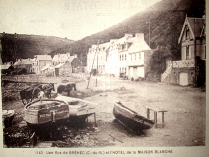 Carte postale du front de port de Bréhec avec l'hôtel de la Maison blancheImmatriculation