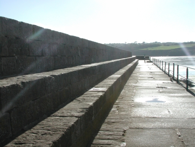 Vue du parapet de la digue ou môle de BréhecImmatriculation