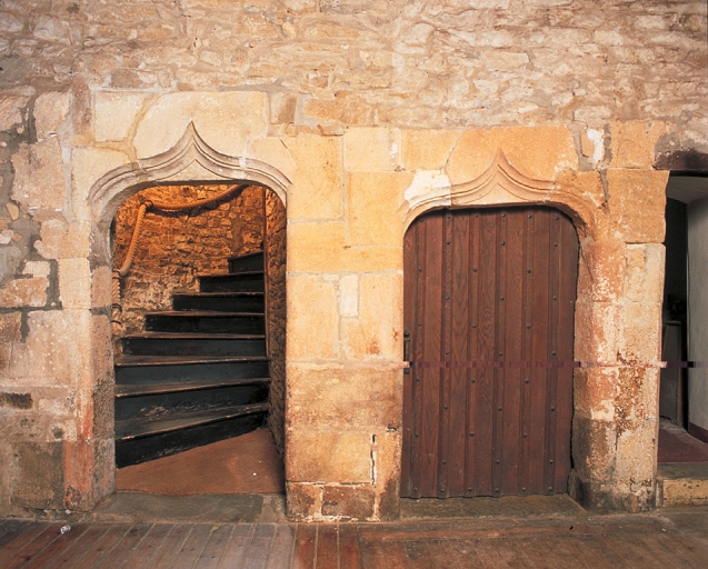 Rez-de-chaussée, portes jumelées donnant accès à l'escalierImmatriculation