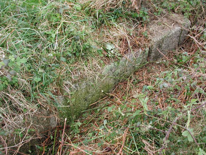 Vue du parapet envahi par la végétation : alignement de pierre de taille de granite (2001)Immatriculation