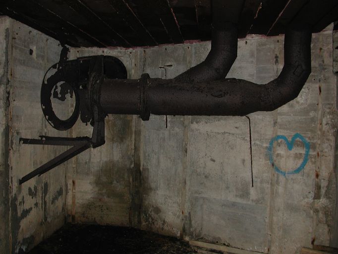 Vue du système de ventilation dans la chambre de tir (état en 2002). Il permettait l'extraction des fumées de tirImmatriculation