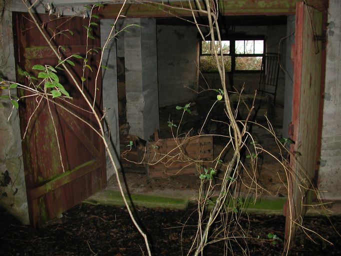 Vue générale de l'arrière de la casemate (état en 2002). Elle semble avoir conservée ses portes d'origine en boisImmatriculation