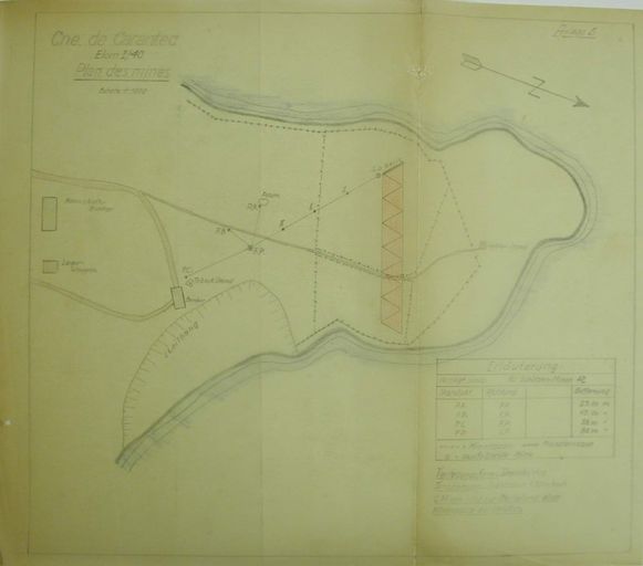 Plan du champ de mines Elorn 1/40 qui barrait la pointe du Cosmeur. Il s'agissait de mine antipersonnel-