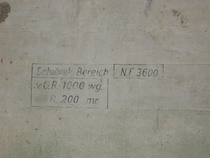 Vue de l'une des inscriptions présentes dans l'un des bunkers - casemates (état en 2002)Immatriculation
