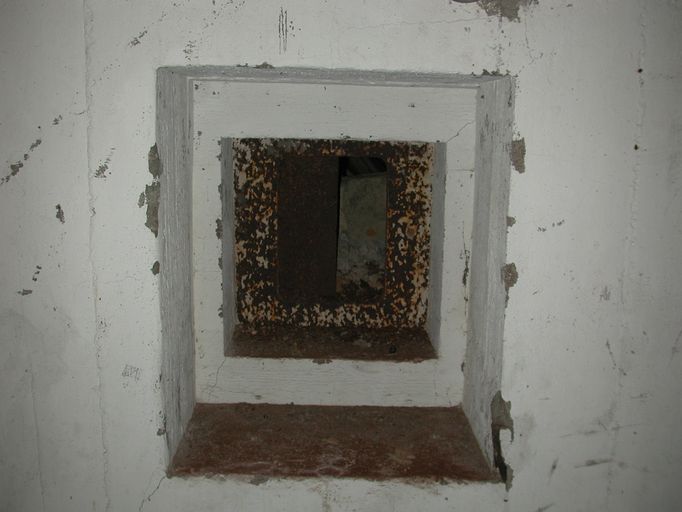 Vue du couloir d'accès : détail du créneau de tir blindé (état en 2002)Immatriculation
