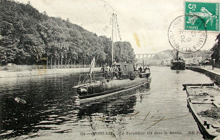 Morlaix : vue générale du torpilleur 154 dans le bassin, carte postale ancienne, Bibliothèque Municipale de MorlaixImmatriculation