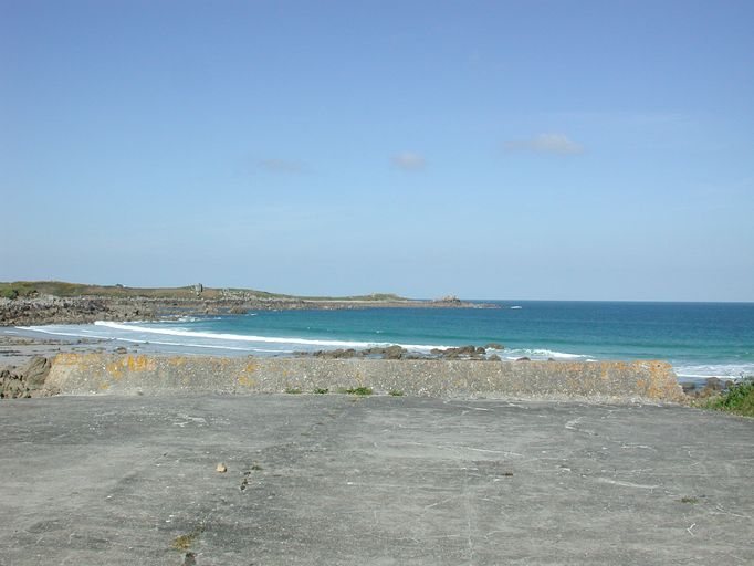 Vue de la plage de Beg Tanguy et la pointe de Tévenn Braz depuis la dalle de couverture du bunker (état en 2002)Immatriculation