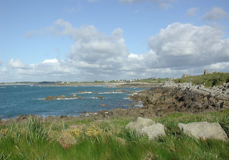 Sibiril : vue de la côte rocheuse depuis l'ensemble fortifié de Tévenn Braz (Cléder). La côte de Sibiril se défend d'elle mêmeImmatriculation