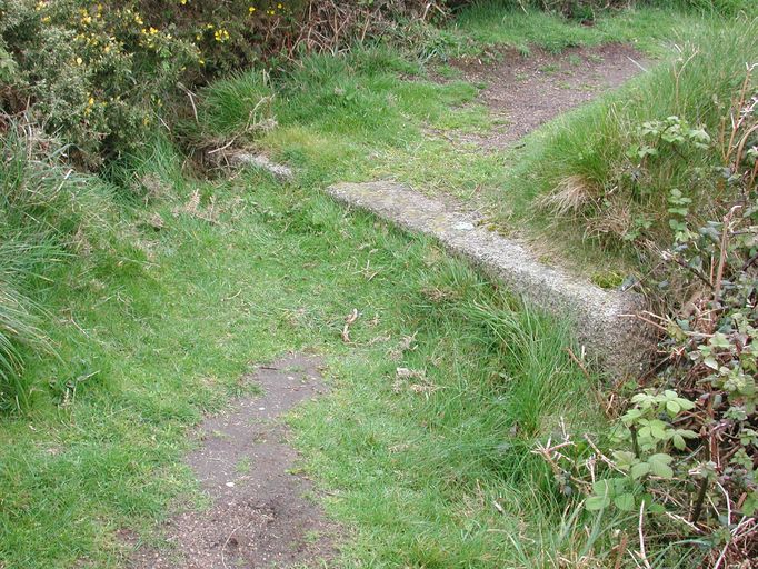 Vue du parapet envahi par la végétation : alignement de pierre de taille de granite (2001)Immatriculation