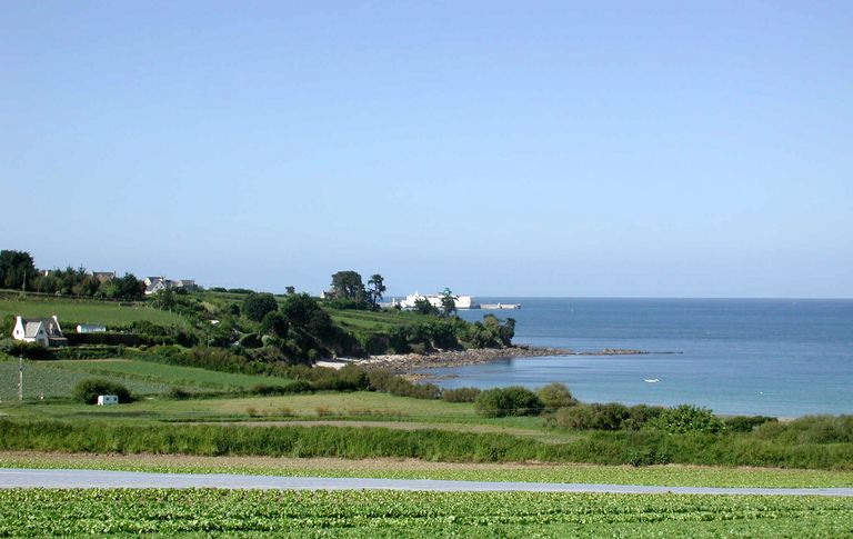 Saint-Pol-de-Léon : vue générale de la plage de Kersaliou barrée par un mur antichars. Nous sommes presque à la limite des communes de Saint-Pol-de-Léon et RoscoffImmatriculation