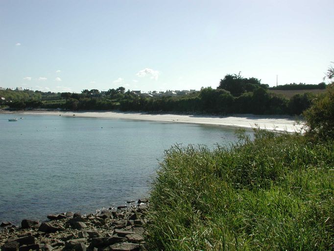 Roscoff : vue générale de Porz ar Bascoun, la Grande Grève. Durant la Seconde guerre Mondiale, la plage était barrée par des mines flottantes et terrestresImmatriculation