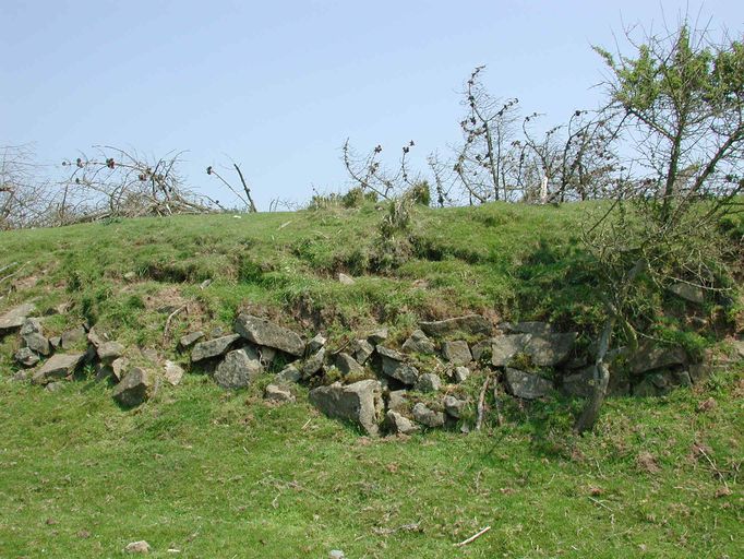 Vue de l'enceinte. Au premier plan, des pierres effondréesImmatriculation