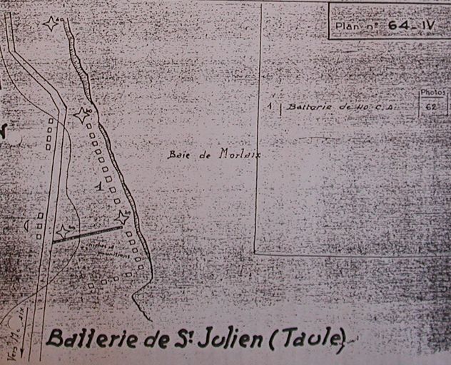 Plan de la batterie d'artillerie de Saint-Julien, vers 1946 (plan extrait du rapport Pinczon du Sel)Immatriculation