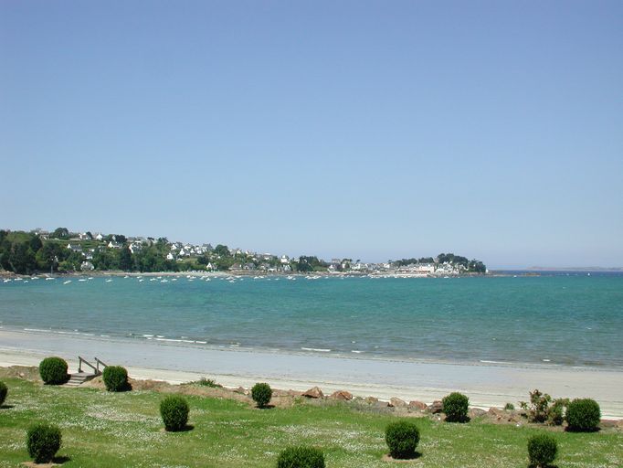 Locquirec : vue de la pointe du Château et de Locquirec depuis la Plage du Fond de la Baie (au premier plan)Immatriculation