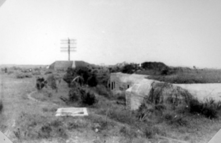 Perros-Guirec : vue de l'ensemble fortifié, station de repérage radar de la Clarté, Mez Gouet : au premier plan un blockhaus abri ; en arrière plan, un radarImmatriculation