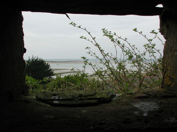 Vue du panorama depuis l'embrasure du bunker implanté au pied du rocher du Kernic : côté mer, l'anse du Kernic (état en 2002)Immatriculation