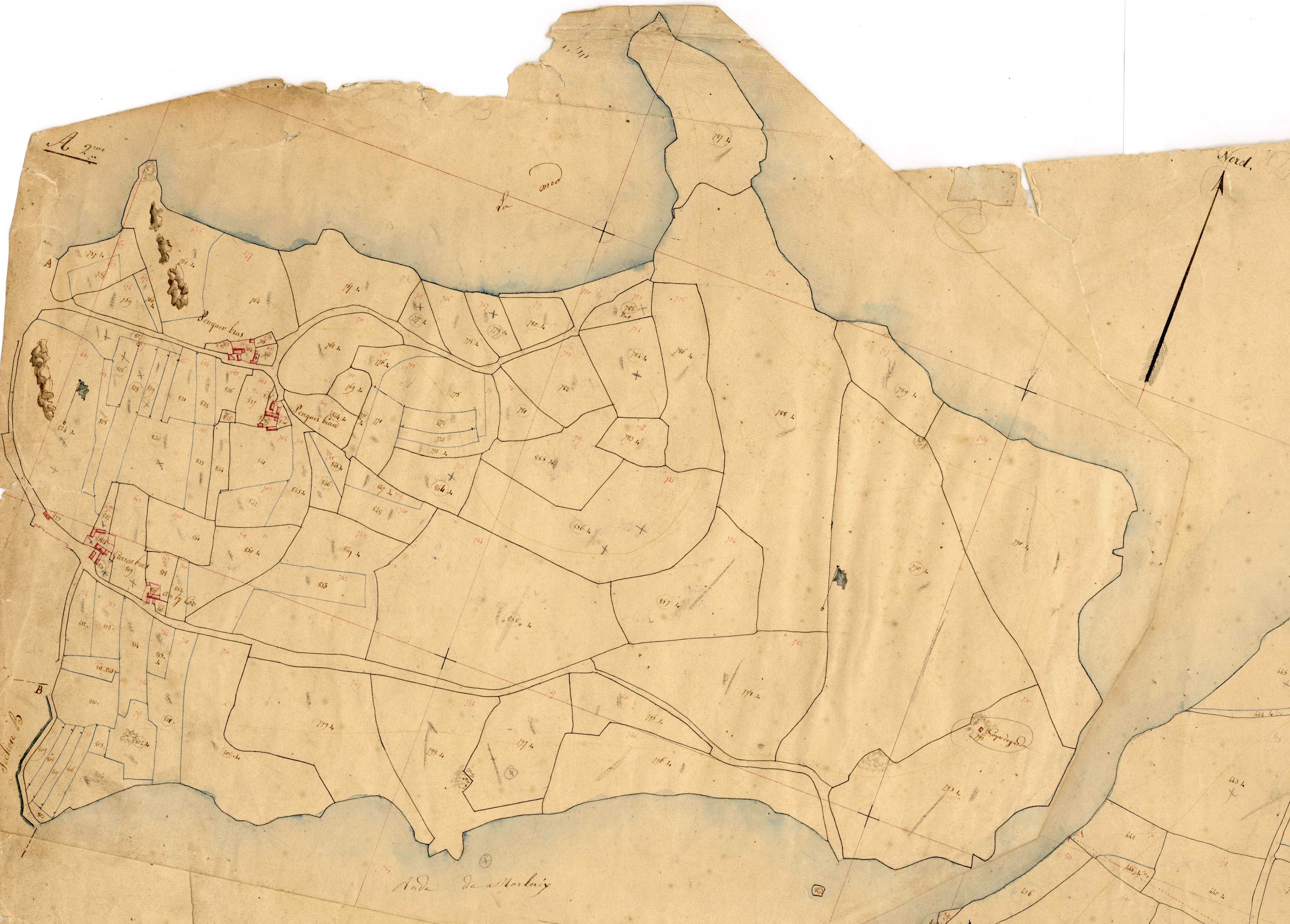 Cadastre parcellaire de Carantec : section A dite du bourg, feuille n° 2, 1828.