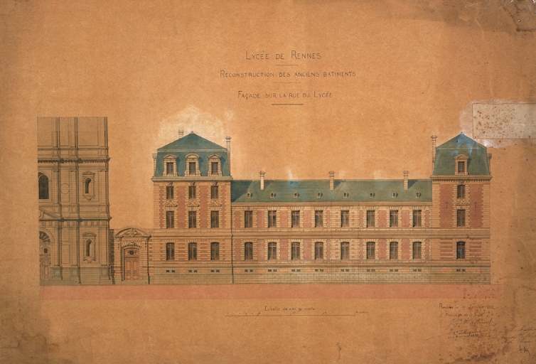 Elévation sur l'actuelle rue du Capitaine-Alfred-Dreyfus (A. C. Rennes)Immatriculation