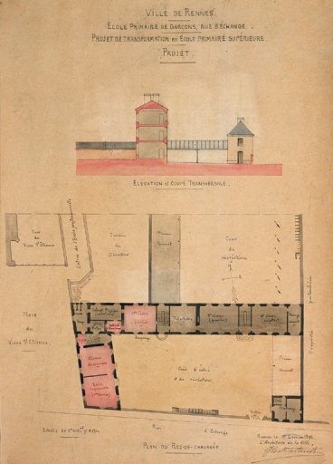 Projet de transformation en école primaire supérieure. Elévation, plan et coupe, 1892 (A. C. Rennes)Immatriculation