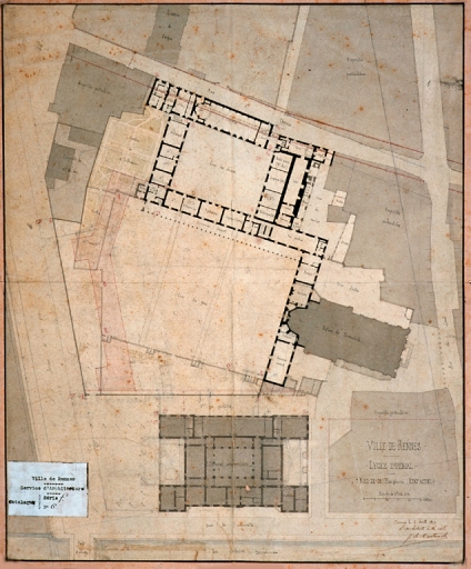 Lycée impérial. Plan du rez-de-chaussée. Etat dressé en 1858-1859 (A. C. Rennes)Immatriculation