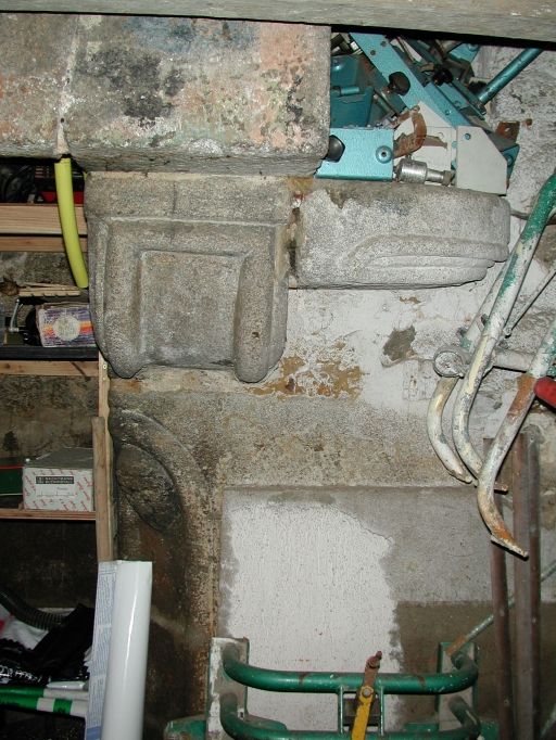 Détail de moulurations d'une importante cheminée située dans le bâtiment Nord (2002).Immatriculation
