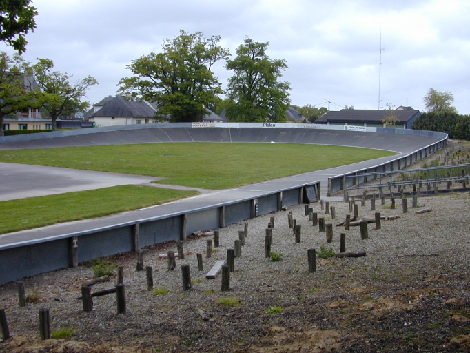 Le vélodrome de Plélan-le-grand avec les vestiges d'une tribune en bois, état en 2002Immatriculation