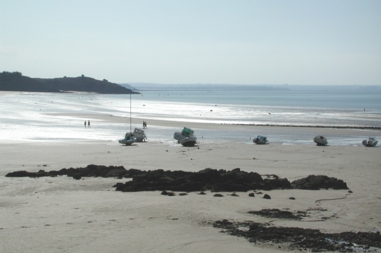 La grève Saint-Symphorien en limite de marée basse et les vestiges de la pêcherie ou écluse de PiéguImmatriculation