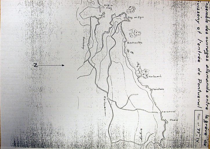 Plan de l'ensemble des ouvrages allemands entre la grève de Guisseny et l'entrée de Pontusval, n° 77, rapport Pinczon du Sel. Livre IV, vers 1947, Service Historique de la Marine, BrestImmatriculation