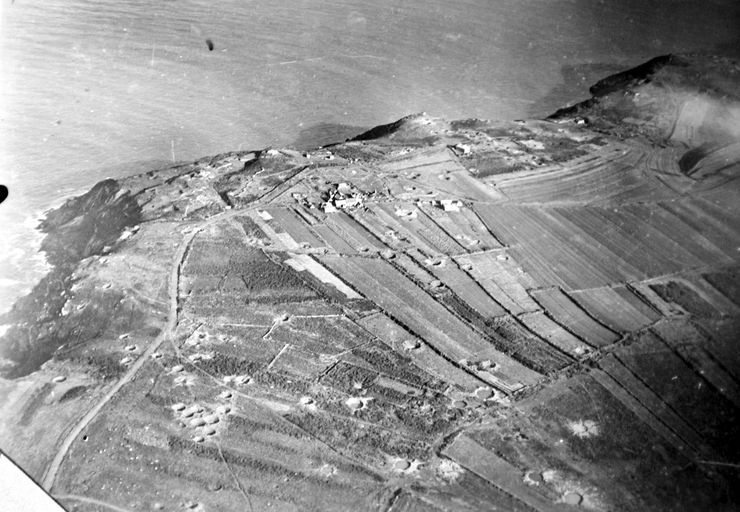 Vue aérienne (détail) de l'ensemble fortifié de la pointe Robert : effets des bombardements alliés, n° 121, rapport Pinczon du Sel. Livre IV, vers 1947, Service Historique de la Marine, BrestImmatriculation