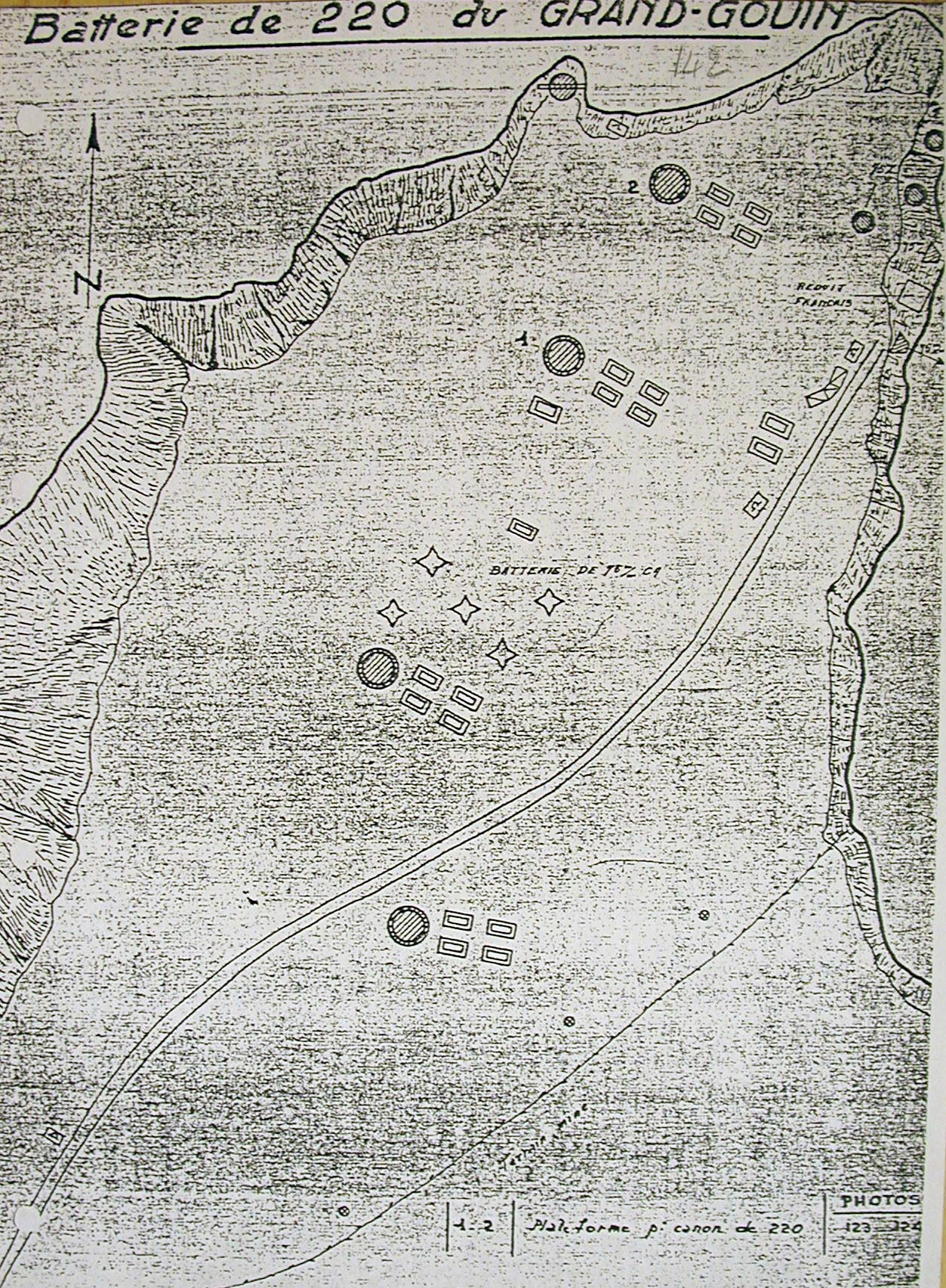 Plan schématique de la batterie du Grand Gouin, extrait du rapport Pinczon du SelImmatriculation
