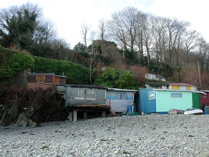 Vue de la grève de Maison-Blanche à Brest : une casemate de type 515 est située à gauche sous la route (elle est masquée par les cabanes de pêcheurs)Immatriculation