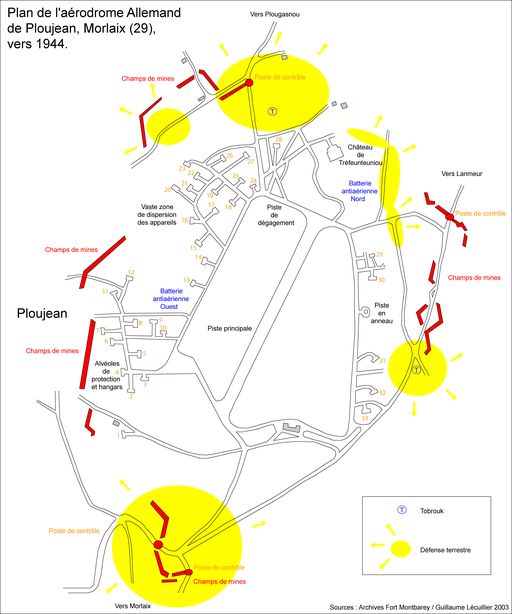 Morlaix : plan de l'aérodrome Allemand de Ploujean, vers 1944, source Fort MontbareyImmatriculation