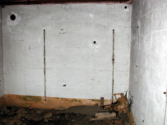 Vue intérieure : salle de garde/pièce de vie (état en 2003). Les murs ont conservé leurs peintures d'origineImmatriculation