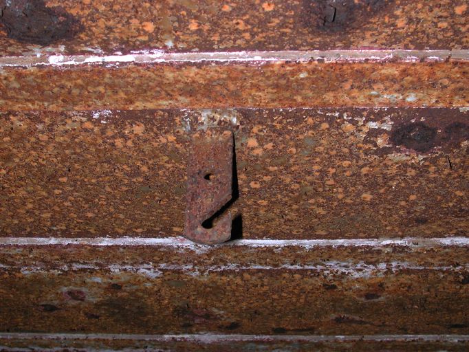 Vue intérieure : détail de l'un des crochets de couchettes de la salle de garde/pièce de vie (état en 2003)Immatriculation