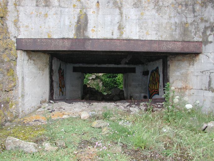 Vue de l'embrasure orientée vers l'est (état en 2003). Le créneau blindé a été ferraillé après-guerreImmatriculation