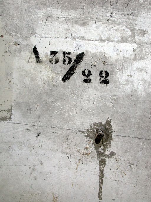 Le numéro de l'ensemble fortifié : "A 35" et le numéro du blockhaus : "22" sont peints au dessus du central téléphonique aujourd'hui disparuImmatriculation