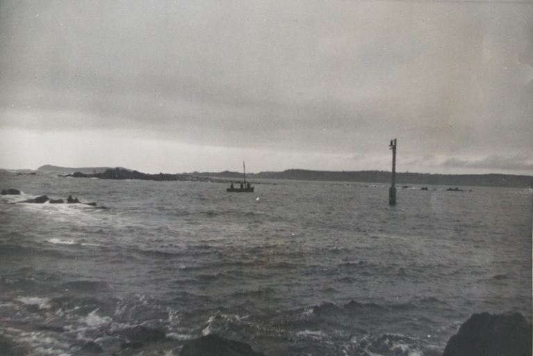 L'entrée du port de Locquémeau avec le balisage de la passe vers 1954 (tour rouge)Immatriculation