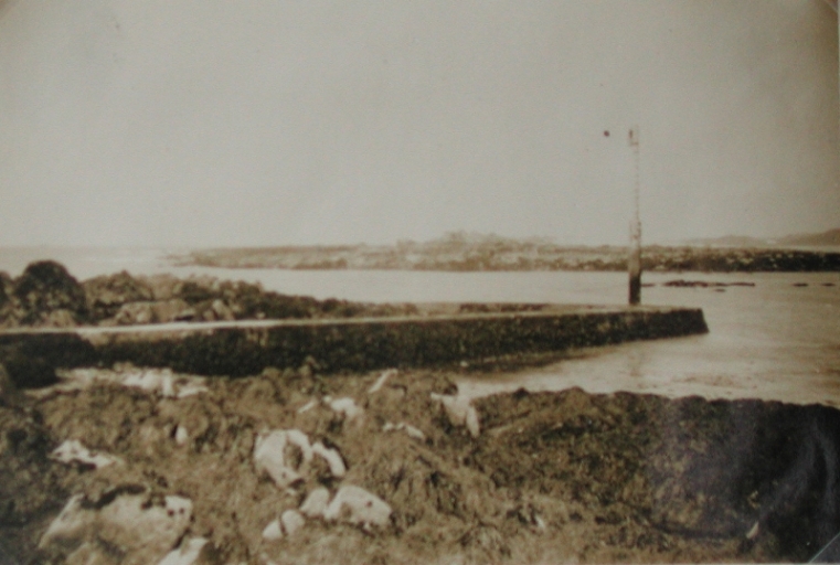 La petite cale (cale d'en bas) à marée haute, avec son feu rouge vers 1954Immatriculation