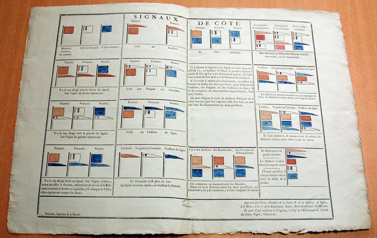 Tableau des signaux de côte par Deherme, ingénieur de la Marine, vers 1793-An III, Archives Départementales des Côtes-d'Armor, 8 L 149, surveillance des côtesImmatriculation