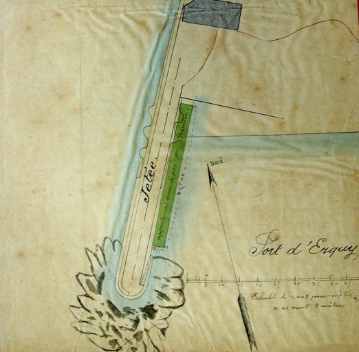 Plan : projet de construction d'un appontement ou estacade en bois au port d'Erquy, 1886 (AD 22)Immatriculation