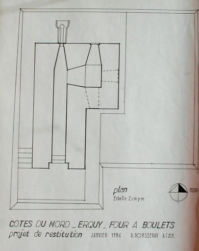 Plan four à boulets d'Erquy : projet de restitution par Dominique Ronsseray, architecte en chef des Monuments historiques, 1986Immatriculation