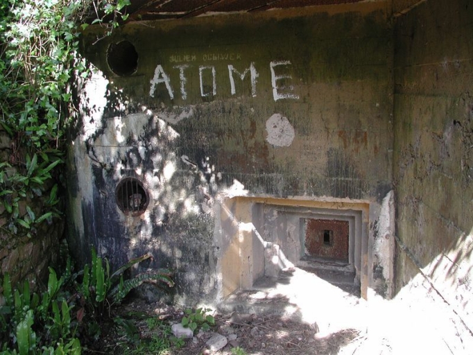 Façade de l'abri du groupe de combat affecté aux radars : postes de tir en enfiladeImmatriculation