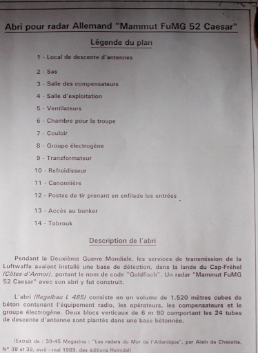 Plan d'un abri pour groupe de combat affecté aux radars du type Mammut FUMG 52 en 1943 (collection particulière)Immatriculation