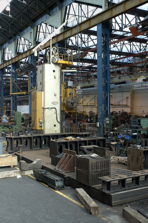 Vue de la halle d'usinage : aléseuse Malf Asquith et son marbre (1950)Immatriculation