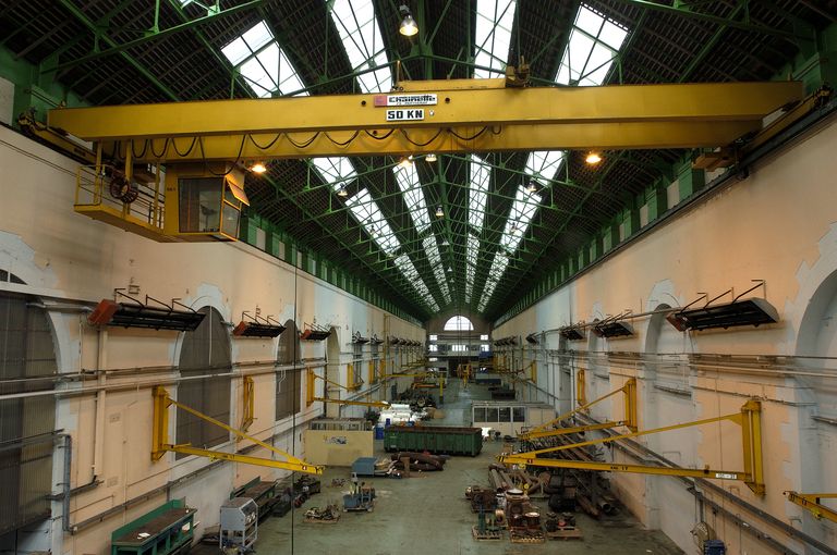 Vue intérieure de l'atelier des Capucins avec pont roulantImmatriculation