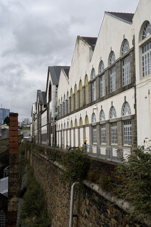 Vue des ateliers des Capucins (état en 2004). A gauche, la cheminée de la forge située au niveau des quaisImmatriculation